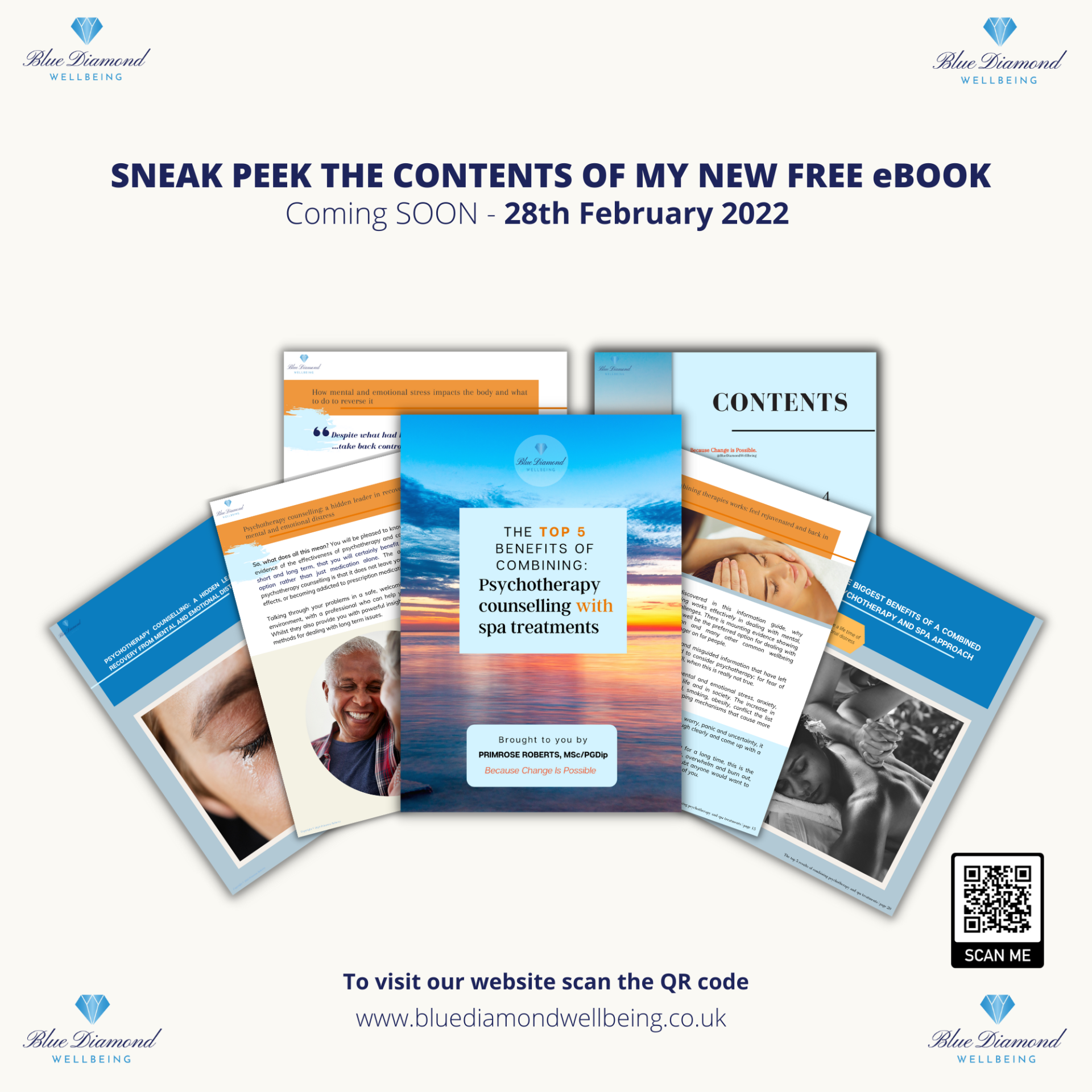 Blue Diamond Wellbeing's first new free e-book, which talks about the amazing benefits of combining psychotherapy counselling and spa treatments for better mental and physical health. I hope you really enjoy reading this book and have learnt that counselling really is beneficial for many great reasons.